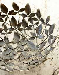 by SURevolution. Sophisticated leaf decorative bowl. Brass coated with patina or gold finish. 12"x4". Handcrafted in India.SURevolution is a green, fair trade fashion house. Fair trade is an organized social movement and market-based approach that aims to help producers in developing countries and promote sustainability. The movement advocates the payment of a "fair price" as well as social and environmental standards in areas related to the production of a wide variety of goods. It focuses in particular on exports from developing countries to developed countries, most notably handicrafts, coffee, cocoa, sugar, tea, bananas, honey, cotton, wine, fresh fruit, chocolate and flowers.