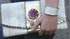 NEW! Rebecca Norman. Large creamy white snakeskin leather clutch with gold snakeskin stripe and round pink agate. Hammered gold metallic trim. Brown stitching. 12"Lx6"T. Handcrafted in California.What's not to love about designer Rebecca Norman? From her best-selling sculptural jewelry to the new textured clutches now available at MOSAIC, Rebecca's unique, special items are handcrafted with flair out of her Solana Beach, CA studio. Her modern aesthetic is the result of an adventurous spirit and vast global life experiences.