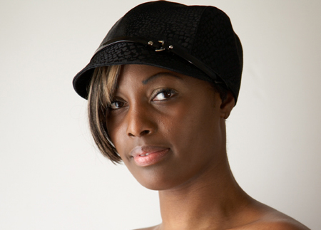 Eugenia Kim. Urban meets classic on this timeless, sophisticated hat. Black silk leopard print. Patent strap across brim with metal hardware. Made in the USA.